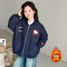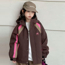 女童夹棉加厚外套秋冬新款中大童拼色韩版夹克儿童连帽保暖冲锋衣