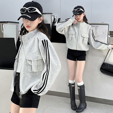 女童春秋款外套2025新款韩版设计感外穿开衫百搭条纹立领夹克卫衣