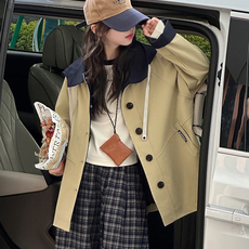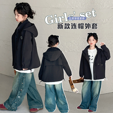 女童秋季外套2025新款洋气中大童韩版连帽风衣中大童秋款夹克风衣